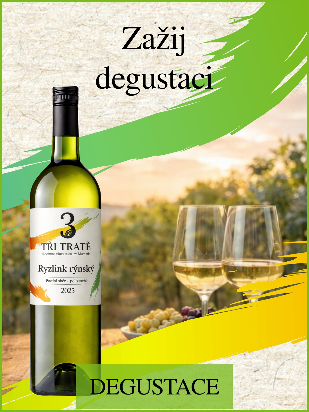 Ryzlink rýnský Moravské zemské víno - polosuché Barva vína je žlutozelená. Víno je velmi kořenité a minerální díky písčitým půdám na kterých jej pěstujeme. Chuť je velmi široká...